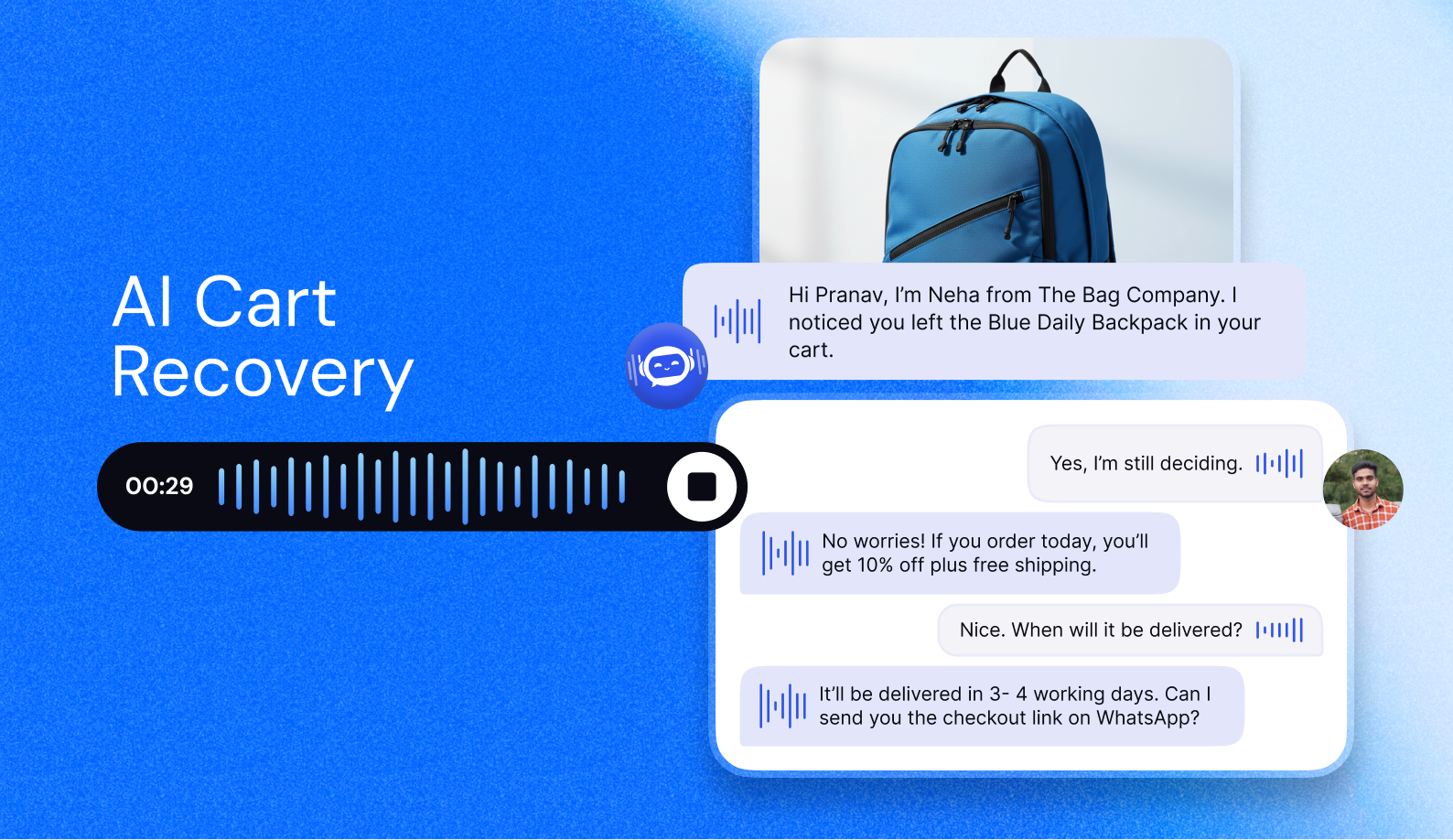 Automate queries, order tracking, and product recommendations, while also enabling shopping experiences on WhatsApp.